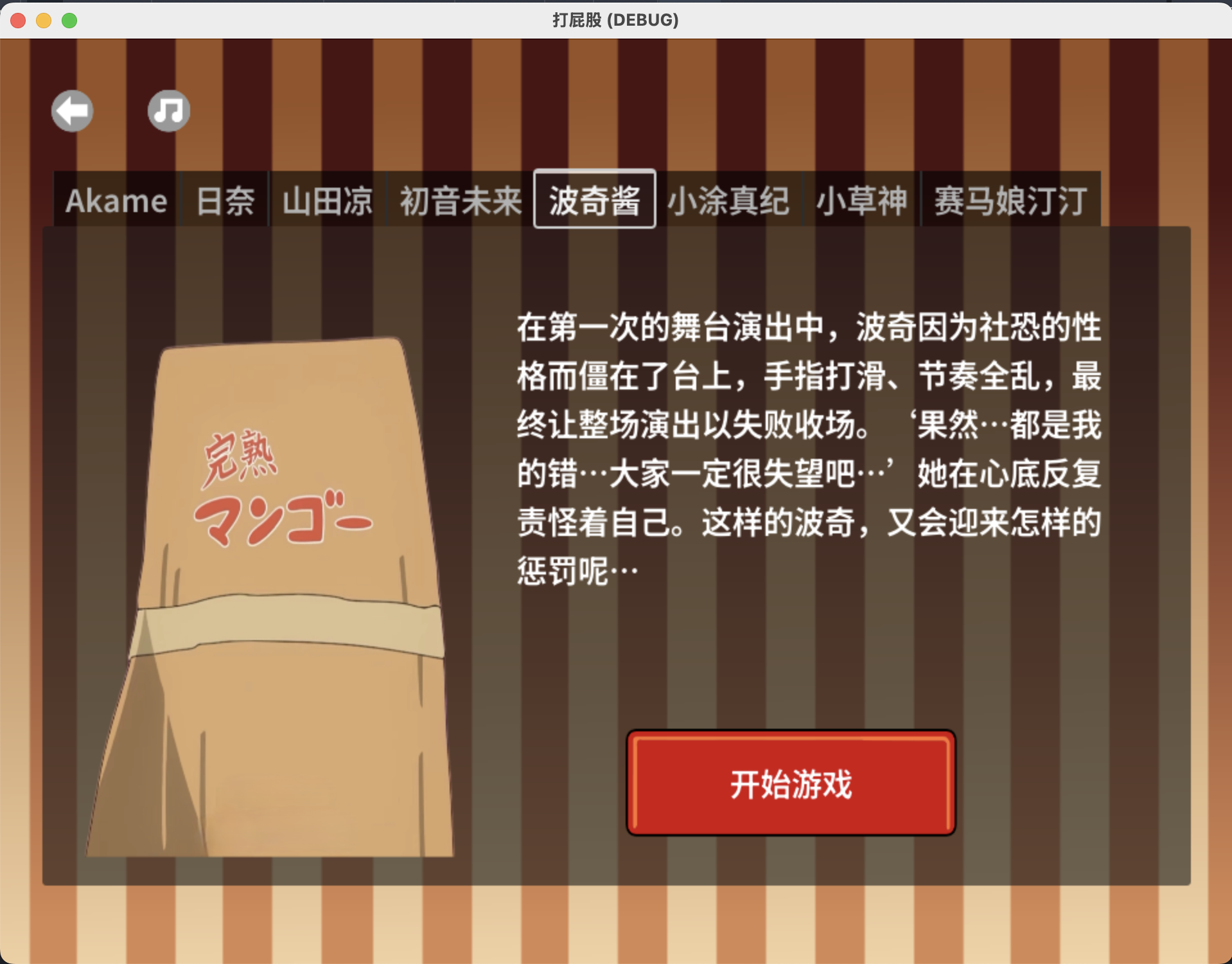 2025-9-1 修改了游戏里的按钮样式,新增了人物选择界面,添加了bgm